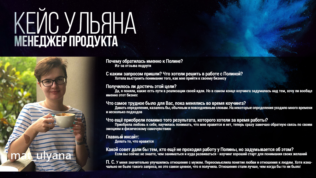 Какой совет дали бы тем, кто ещё не проходил работу у Полины, но задумывается об этом